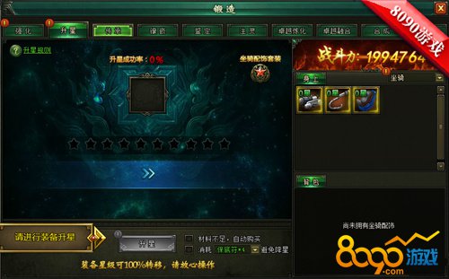 在游戏里,玩家可以在锻造升星界面,战力展示下面人物的下拉列表里选择坐骑宠物等的配饰进行升星。升星可以提高主角的攻击和防御,需要消耗升星符和银币,有升星成功率哦!