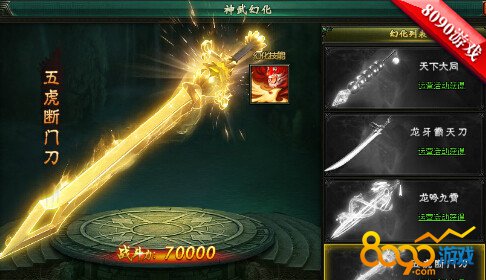 搜索"8090网页游戏"盗墓笔记神武幻化一直是游戏里面的一大亮点,各种帅气拉风的幻化应有尽有,就看各位小伙伴的需求了。五虎断门刀是目前属性最好的一把神武幻化,获得方式当然不简单。最近出的龙抬头活动,全服排行前20才有送,前三名赠送的是5星的幻化。
