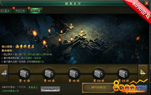 其次就是阴兵入侵,在游戏中我们需要组织阴兵入侵,为了我们家人和朋友,我们一定要努力击杀阴兵,在游戏中侵入的阴兵数量超过通关上线的时候,我们的副本就视同失败,我们在游戏中会面对一波接一波的怪物,我们每击杀一波怪物都会获得相应的奖励,而这些奖励会在我们系统结算的时候,统一进行发放,另外我们首次通关一定的波数还可以获得首次通关的奖励,非常的丰厚!