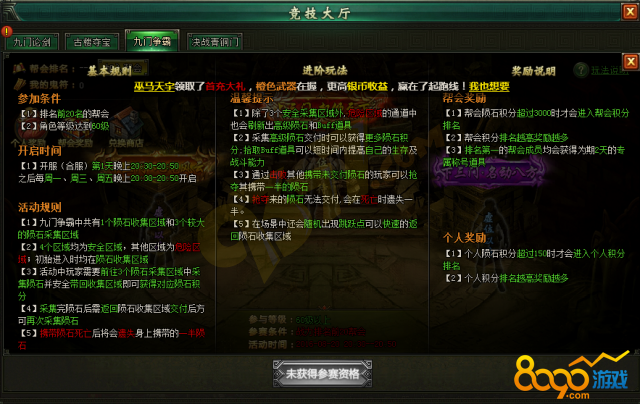 1.排名前20名的帮会可以参加九门争霸;