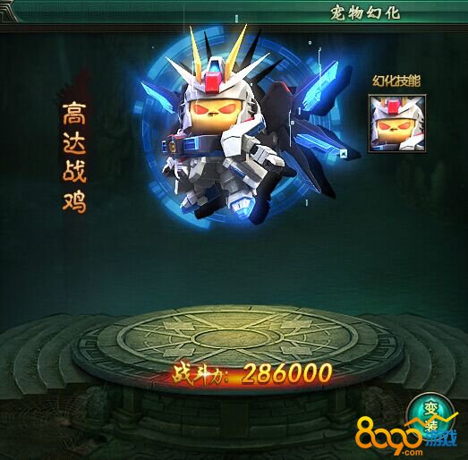 那么最新幻化,高达战鸡的属性如何呢?宠物幻化的属性提升主要体现在战力的绝对加成这一方面,与上一只幻化鱼善龙相比,战力直接提升了90000点,并且高达战鸡的特殊幻化技能,也增加了减少伤害的概率,当然,其最吸引人的还是那可爱又说不是霸气的外形了,小编想,拥有这么一只可爱的宠物该是多么令人艳羡的事情啊。