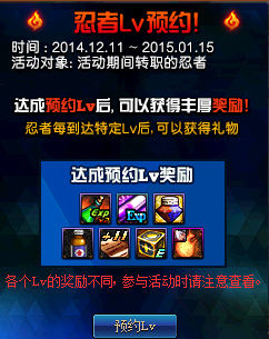 忍者练级的异界礼盒是有的,玩家在游戏中只要预约等级到71级就能在游戏中领取账号绑定额异界礼盒了。可以选择获得全职业勇者套装部位中的一个。 该道具为账号绑定。当然了等级升级到71级还是需要不少时间的,而活动一直持续到1月15号,所以想要拿异界装备的小伙伴一定要注意了哦。