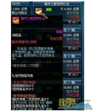 相信很多的玩家都想知道暗夜使者二觉宠物谁最好?宠物礼盒多少钱购买?宠物礼盒值不值得入手?宠物礼盒可以交易吗?请看下面的介绍吧。