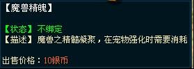 3) 炼化当前宠物,根据宠物的品阶、等级,获得魔兽魔核,根据炼化的宠物阶级和等级,获得的魔兽精魄的品阶也不同,分为1-9阶。
