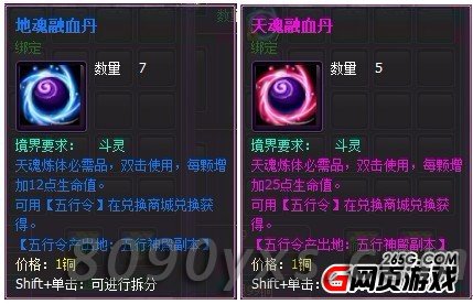 2、地魂融血包每天有兑换数量限制,天魂融血包则没有限制。