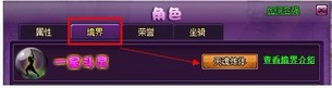 二、系统介绍1.开启条件角色到达斗灵境界,可以按C键人物界面或游戏下方【角色】-【境界】中打开【天魂炼体】界面。