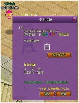 可以刷换车令来选择领取镖车的颜色,不同颜色的镖车,成功运抵时获得的收益不同,白色最低,橙色最高,开始的时候最好都刷橙色的镖车,这样给的钱和经验都会多很多,能够快速拉开跟其他人的距离。