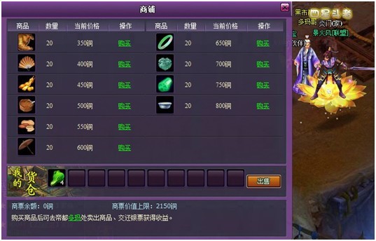 首先先领取商贸商票,然后打开商贸商店,选择商品,把商票的余额购买光,然后去镇鬼关或黑角域找npc多玛弟或多玛哥(建议去黑角域,钱比较多),把商品全部出售掉,
