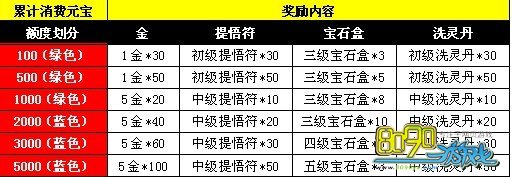 累计消费达到3000不绑定元宝即可领取1个“消费3000元宝礼包”;