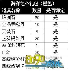 活动期间,每单笔充值500-999元宝能够获得【海洋之心包*1】*2
