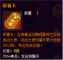 2. 每天各势力累计提交达到2013张时,系统以附件形式发放一个祈福礼包(仅限提交过祈福卡的该势力玩家)