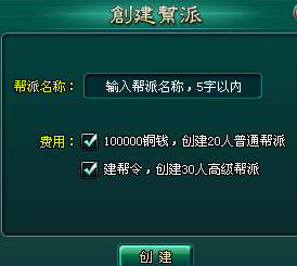 2、花费50000铜币或1个建帮令,建帮令可在商城购买。