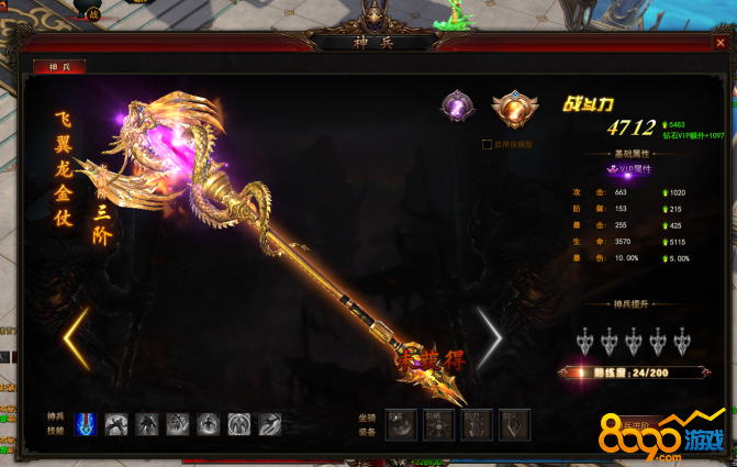 1.2 神兵会有炫酷的外显显示,神兵等级越高获得的战力加成越高。