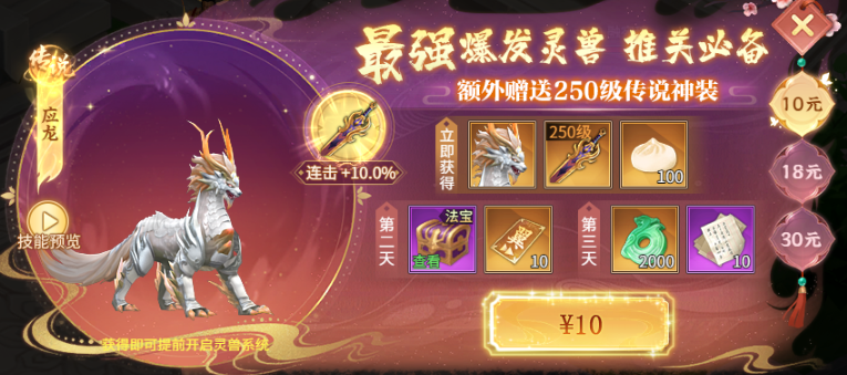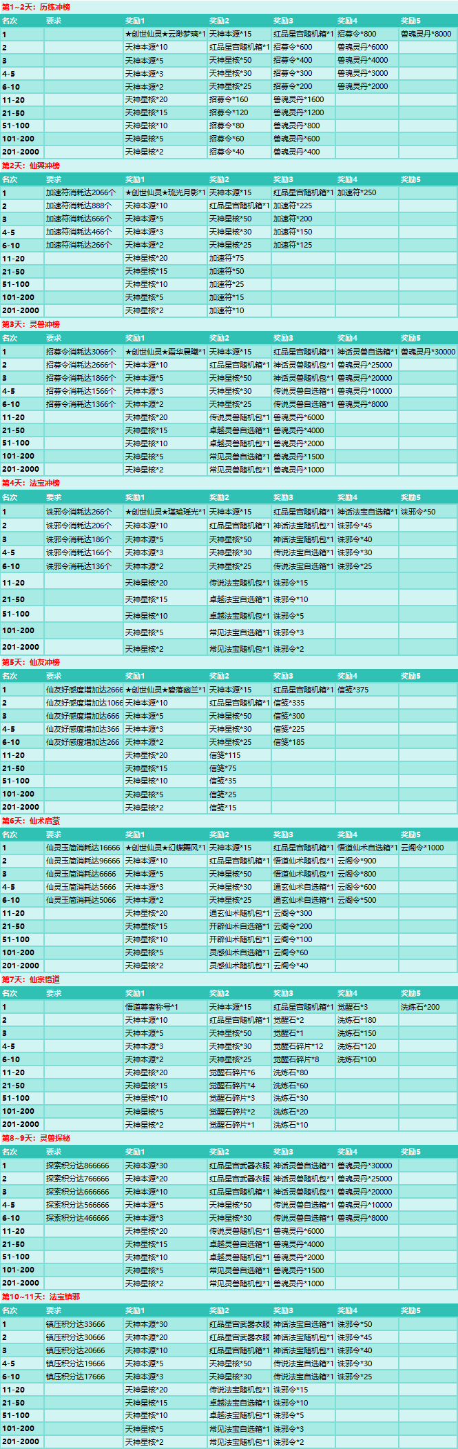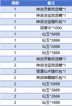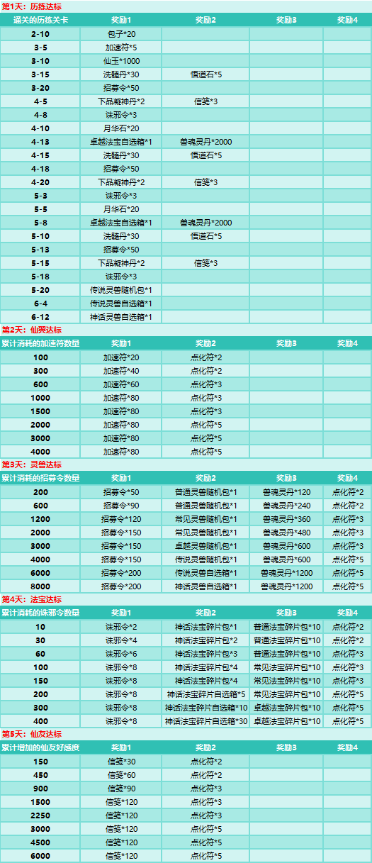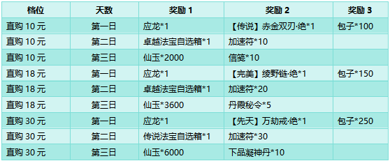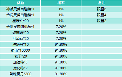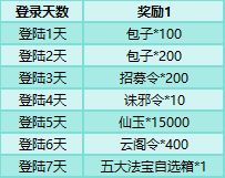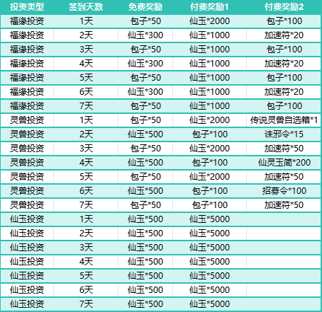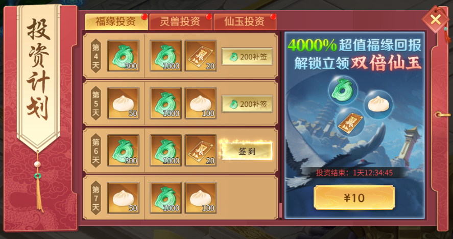 活动时间:福缘投资2~8天,灵兽投资3~9天,仙玉投资4~10天
