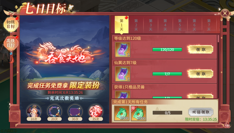 活动规则:达到特定境界,即可开启天道馈赠,需按照特定顺序来领取奖励