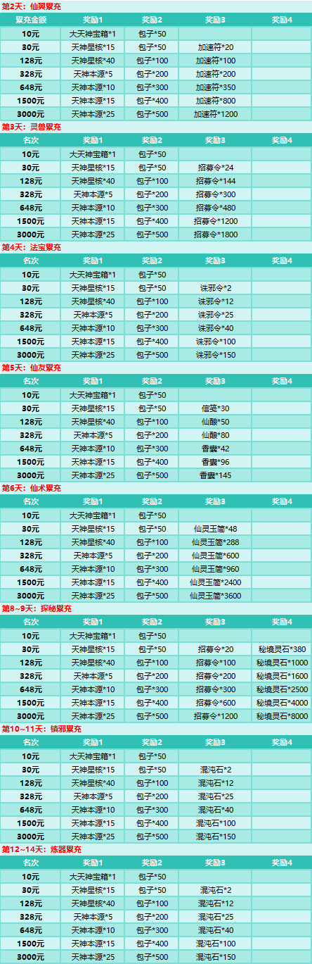 活动规则:活动期间,累计充值特定金额即可领取当日活动的累充福利