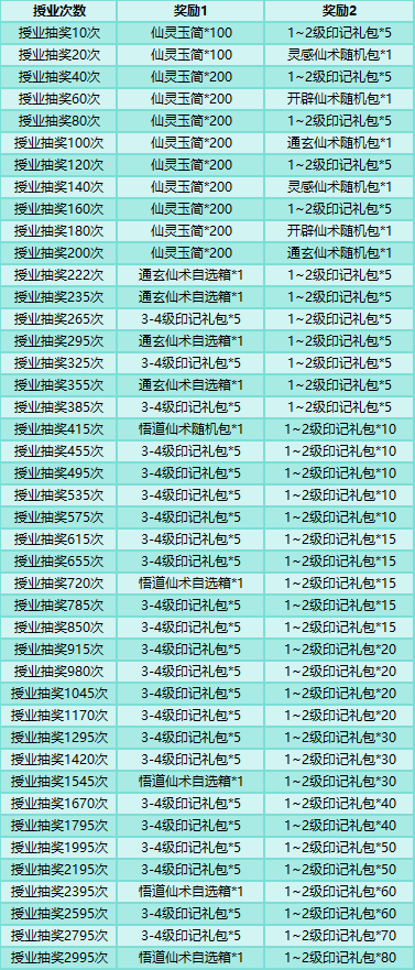 活动规则:完成活跃任务即可领取仙灵玉简,活动期间消耗仙灵玉简可大量抽取仙术,并根据消耗的仙灵玉简数进行排名,以发放排名奖励