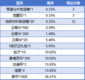 消耗仙灵玉枢,可以进行参悟,抽取限量道具