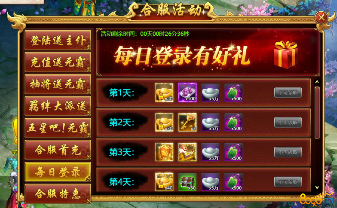 晚开的服务器,将按开服天数差、获得天数补偿。