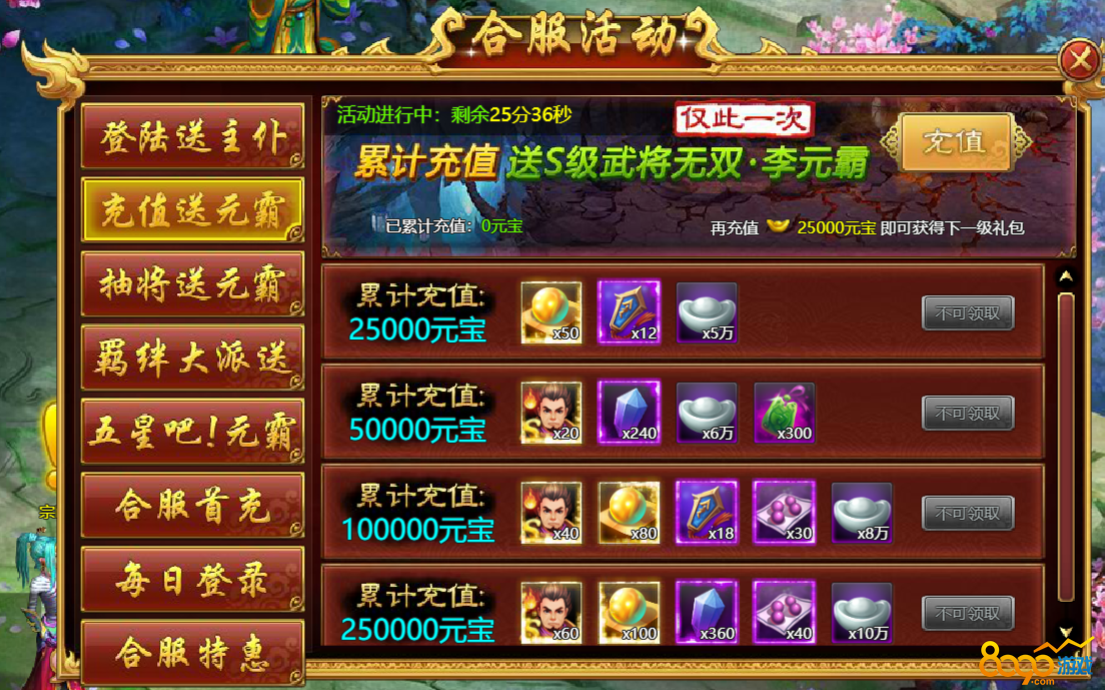活动期间,充值达到指定金额即可领取无双·李元霸将魂!