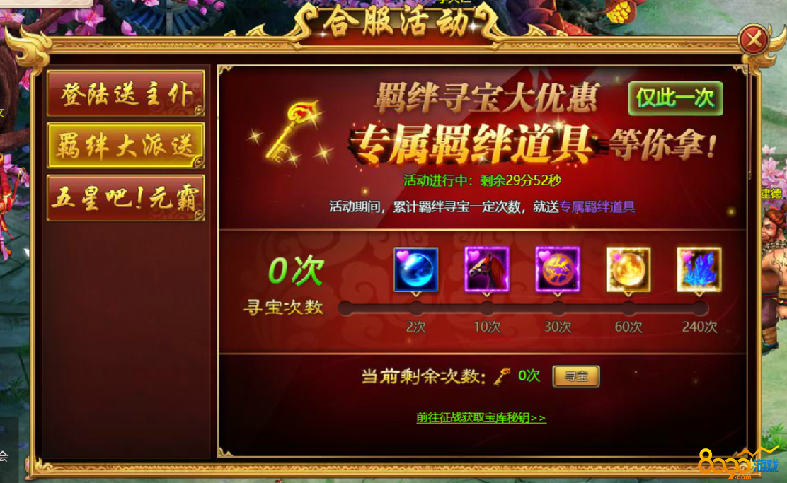 活动期间,羁绊寻宝达到指定次数即可领取丰厚奖励!