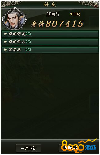 在界面下方还有两个按钮,一个是一键征友,点击按钮,会跳出系统为您搜罗的游戏内玩家,你可以自行挑选。