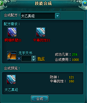 那么两种合成技能的效果就是:天神之力,攻击86;晕迷抗性,抗性160