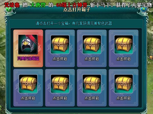 击败神兽,参与击杀神兽的本方阵营玩家都可进行抽奖,有机会获得完美防具哟