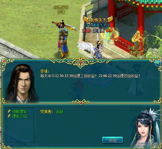 玩家每天可运镖2次(VIP玩家特权有加运镖和劫镖次数)