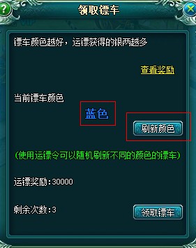 玩家可以消耗不同颜色的运镖令来领取不同颜色的镖车
