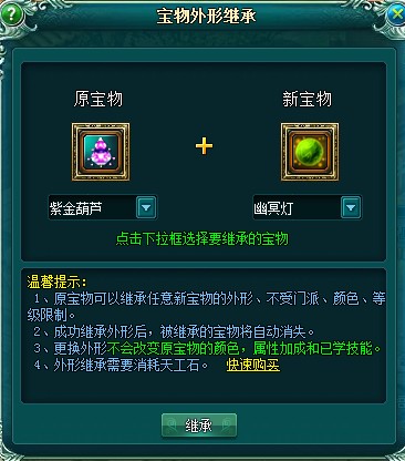 使用天工石进行宝物外形继承