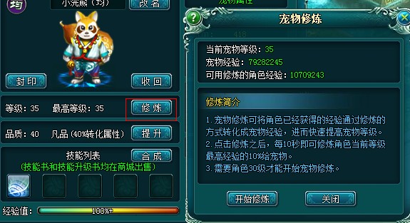 宠物技能,说到技能,这是战斗非常有用的,宠物技能分为普通技能和战斗技能,普通技能可以直接学习,是用来直接增加主人气血,攻击,防御等属性;战斗技能通过激活战技石来学习,战斗技能在攻击有几率触发,对敌方造成不良效果。2代宠还有独特的天赋技能,这个是2代宠出生就随机获得的,玩家也可以进行刷新获得不同的天赋技能。