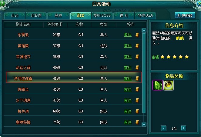 副本模式:单人副本