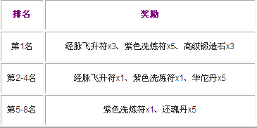 活动内容:该活动依据为游戏中活动结束时的等级排行榜名单,排行榜前8名,共计8人。