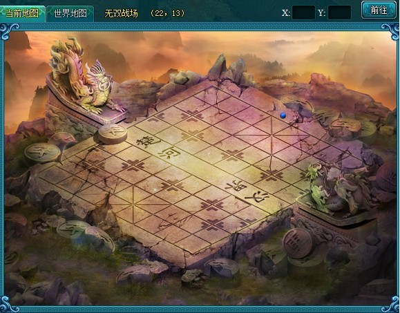 活动期间内,每小时的第10分钟和第40分钟,报名参加战场的玩家屏幕中央出现按钮,点击选择确定,便能进入战场,战场是一副巨大的中国象棋棋盘,对战双方出生在棋盘的帅位或将位。在棋盘上,双方都有16个将领,与象棋开局布棋一样,玩家消灭对方的将领后,主帅才会出现,消灭对方主帅,比赛获胜。