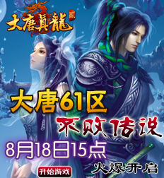 大唐真龙2双线61区“不败传说”8月18日火爆开启