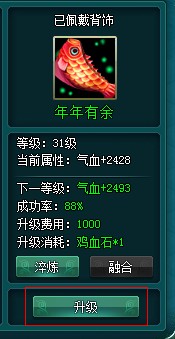 消耗鸡血石可以升级背饰,成功率每小时刷新一次