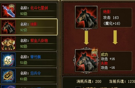 帝王传中的兵魂就是用来升级装备的。专业点的化兵魂是用来魔化装备的,玩家只要在强化装备界面点击魔化按钮,就可以进行装备升级,且玩家在强化装备面板可以查看兵魂数量。