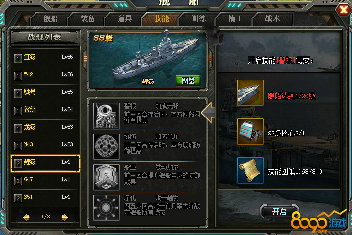 1.船技能升级所要的材料足够时,可以开启船的技能。