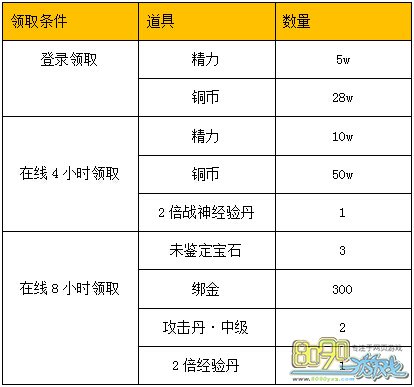 活动期间内,每位玩家登录即可领取:(注明:活动期间内只能领取一次)