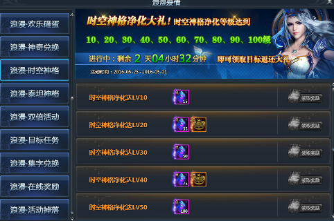 时空神格净化达LV90,即可获得神格净化石*200