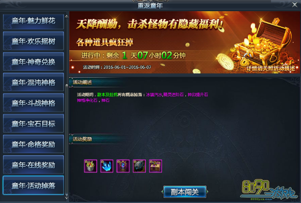 【活动内容】:活动期间,副本及挂机将有概率掉落:冰镇汽水,精灵进阶石,神印提升石,
