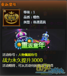 【活动内容】:活动期间您可以通过“摇钱树”或者其他活动等途径获得“童年礼物”道具,道具可以在活动商店中兑换各种奇珍异宝。