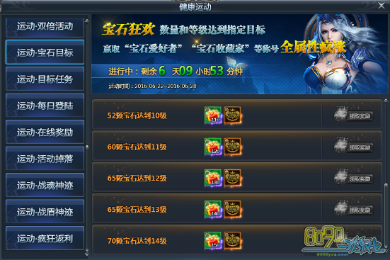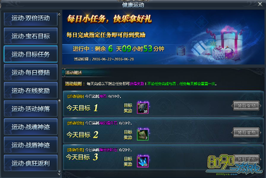 搜索"8090网页游戏"活动一:健康运动·每日登陆