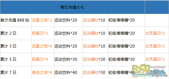 备注:1.单日充值达到888钻石以上即可累积1天,累积达到指引天数即可领取奖励