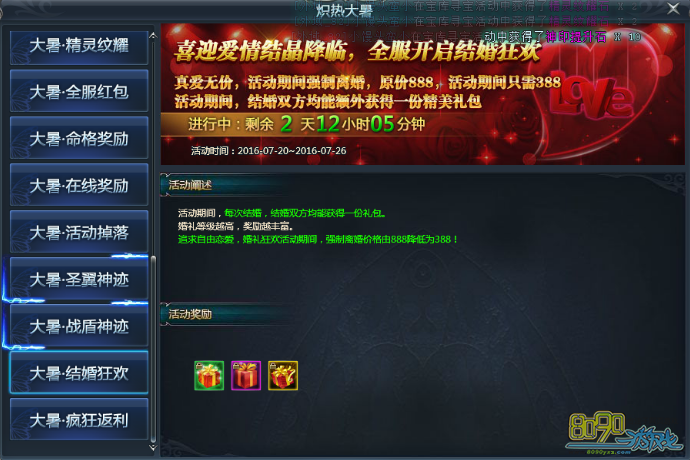 【活动内容】:活动期间,每次结婚,结婚双方均能获得一份礼包。