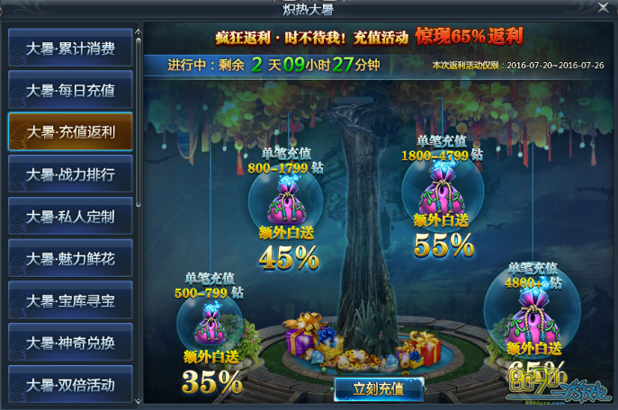 2.单笔充值800~1799钻即可获赠45%钻石高额返利!