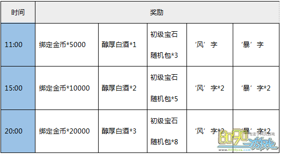 【活动内容】:野外挂机,将有概率获得道具:风、暴、国、庆、快、乐,兑换即可得到精灵进阶石、醇厚白酒和国庆快乐礼包!