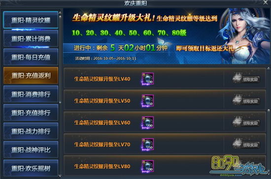 【活动内容】:活动期间,生命精灵纹耀等级达到10、20、30、40、50、60、70、80级,即可领取目标返还大礼;