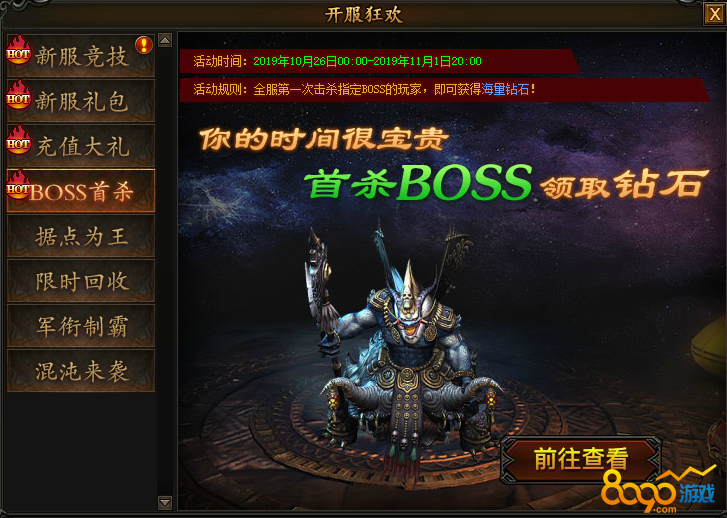 活动期间内,击杀指定的BOSS即可领取丰厚奖励。